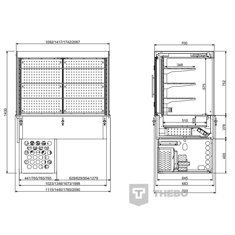 BxDxH 1115x720x1430 mm Breedte uitwendig 1115 mm Diepte uitwendig 720 mm Hoogte uitwendig 1430 mm Inbouwbreedte 1090 mm Inbouwdiepte 690 mm Maatsysteem 3/1 Gastronorm Specifieke eigenschappen