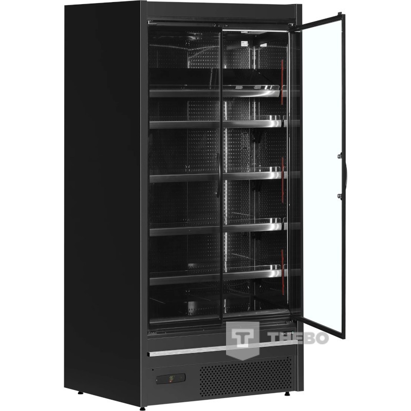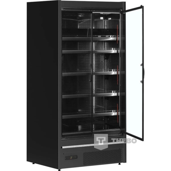 De Tefcold MDCA937HB is een energiezuinige koelkast met glazen deuren. De glasdeur koelkast is uitgerust met een geforceerd koelsysteem en maakt gebruik van het milieuvriendelijke koudemiddel R290. Dankzij het digitale temperatuurdisplay met bluetooth is het temperatuur eenvoudig in te stellen. De planken in de MDCA937HB kunnen in een hoek van 10° of 20° worden gekanteld en zijn standaard voorzien van acryl stootstaven en prijskaarthouders. Onderaan is er plaats voor standaard E2-groentekisten voor eenvoudig laden. De verticale LED-verlichting langs de binnenkant van elke wand zorgen in combinatie met de horizontale verlichting aan de bovenkant voor een uitstekende productpresentatie.