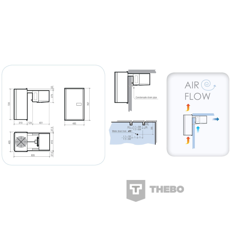 - In verband met de afmetingen van de koelcel passen de deur en koelmotor niet in alle gevallen naast elkaar.