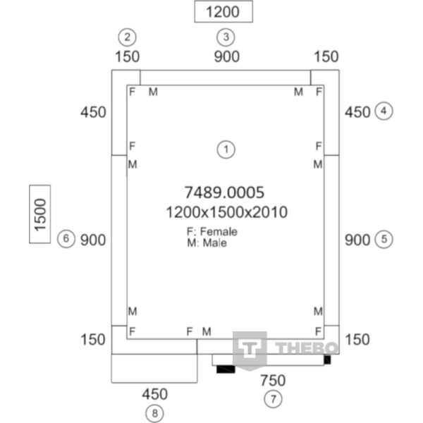 BxDxH 1200x1500x2010 mm Breedte uitwendig 1200 mm Diepte uitwendig 1500 mm Hoogte uitwendig 2010 mm Interieurbreedte 1040 mm Interieurdiepte 1340 mm Interieurhoogte 1850 mm Deurbreedte 580 mm Isolatiedikte 80 mm Specifieke eigenschappen