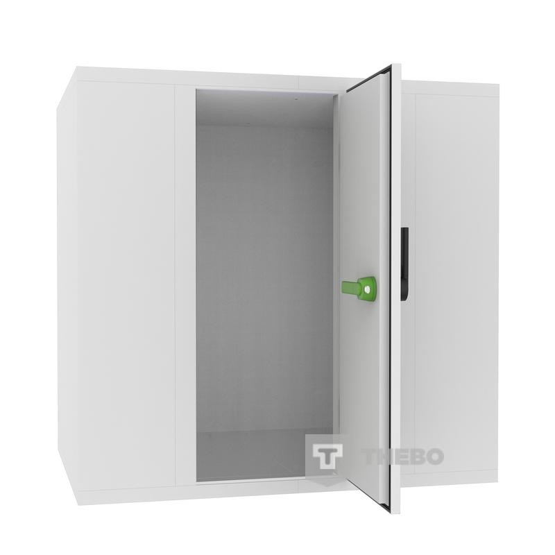 BxDxH 1800x1800x2010 mm Breedte uitwendig 1800 mm Diepte uitwendig 1800 mm Hoogte uitwendig 2010 mm Interieurbreedte 1640 mm Interieurdiepte 1640 mm Interieurhoogte 1850 mm Deurbreedte 700 mm Isolatiedikte 80 mm Specifieke eigenschappen