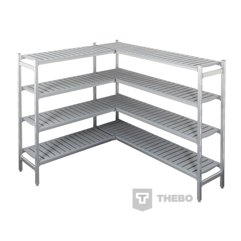 De CS 7013.3790 is een L-vormige rekstelling. Dit model heeft vier niveau’s, is 450 mm diep, 1700 mm hoog en de langste zijde is 2130 mm breed.