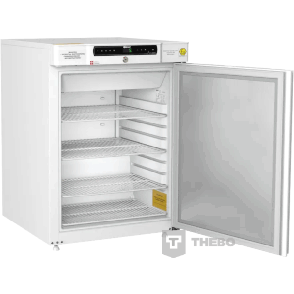 De koelkast is uitgerust met een digitale regelaar en een E-sensor voor de producttemperatuur, ook een akoestisch en visueel alarm voor temperatuur- en deuralarmen. Alarminstellingen kunnen afzonderlijk worden ingesteld. De Smart Defrost-functie biedt automatische ontdooiing en verdamping van dooiwater. Met een netto-inhoud van 104 liter en ruimte voor vier schappen van 430 mm en drie schappen van 300 mm.