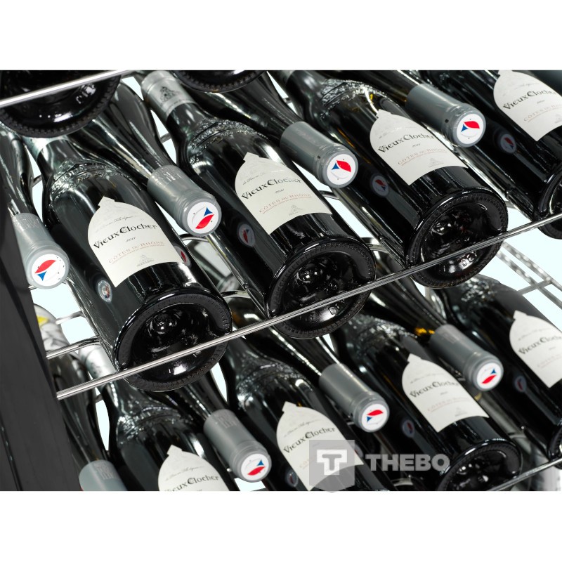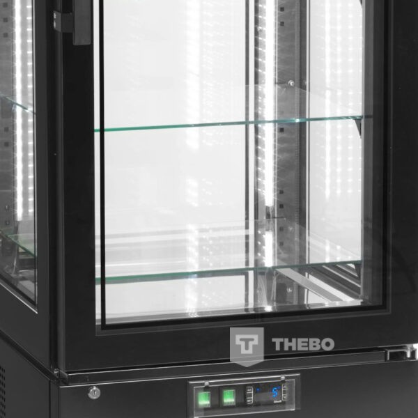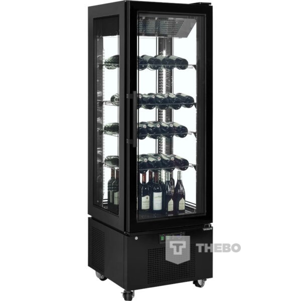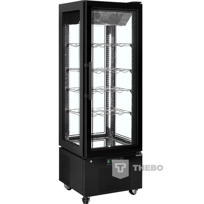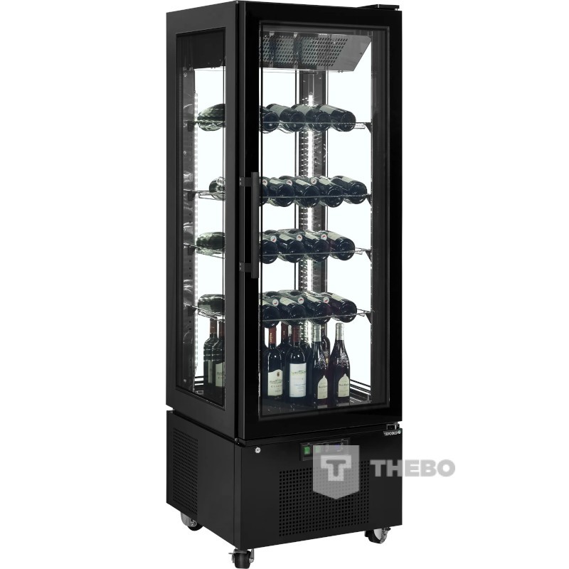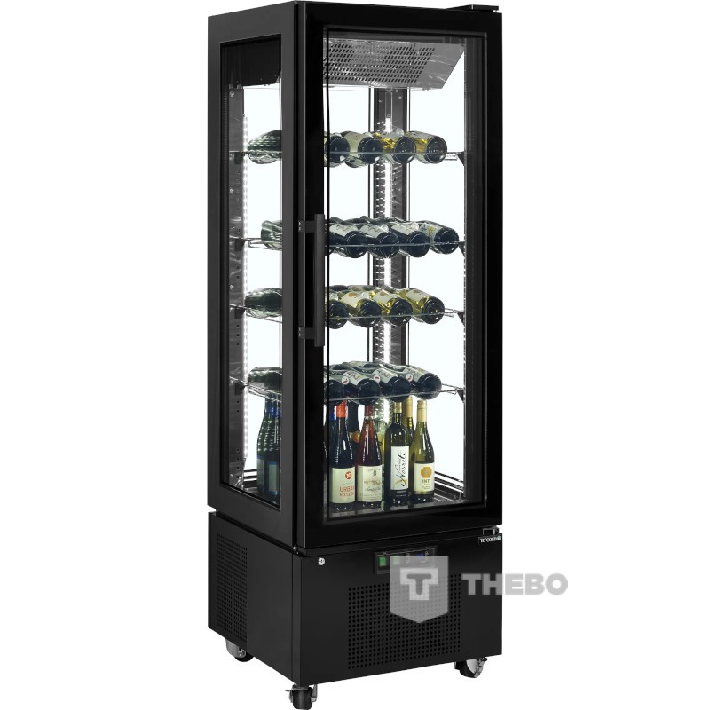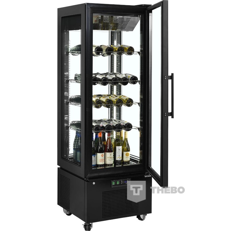 Merk Tefcold Garantie 1 jaar Energieklasse C Gewicht 225 kg Inhoud 364 L Inhoud netto 248 L Materiaal inwendig RVS Materiaal uitwendig Zwart / glas Temperatuur +2/+8 °C Temperatuurregeling Digitaal Aansluitspanning 230V Verlichting LED Wielen Ja Afmetingen