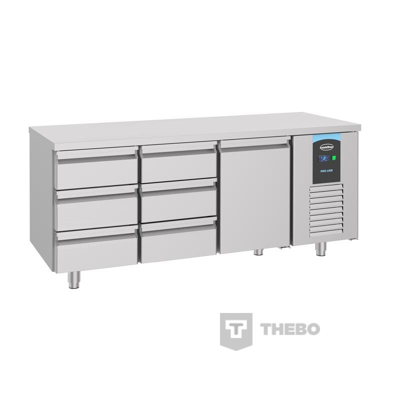 De koelwerkbank 7489.5565 beschikt over een geforceerd koelsysteem. Het meubel heeft een automatische ontdooiingsfunctie. Daarnaast is de maximale omgevingstemperatuur van de 7489.5560 43 graden Celsius waardoor de koeling ook in een warmere ruimte kan functioneren. De bruto inhoud is 474 liter en het gewicht is 175 kg. De koelwerkbank heeft zes lades en één deur. De deur beschikt over één rooster. Er zijn eventueel ook roosters bij te bestellen. Wielen voor onder de koelwerkbank zijn eventueel ook te bestellen. De minimale en maximale temperaturen zijn respectievelijk -2 en +8 graden Celsius. De temperatuur is digitaal in te stellen.