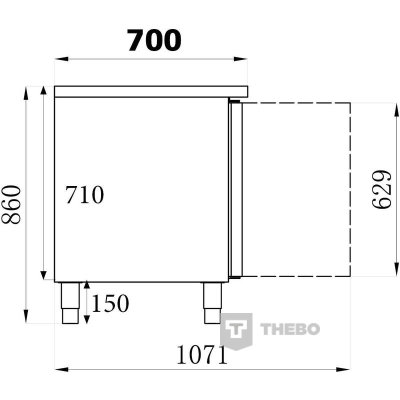 BxDxH 1795x700x850 mm Breedte uitwendig 1795 mm Diepte uitwendig 700 mm Hoogte uitwendig 850 mm Isolatiedikte 60 mm Maatsysteem 1/1 Gastronorm Hoogte poten 150-200 mm Specifieke eigenschappen