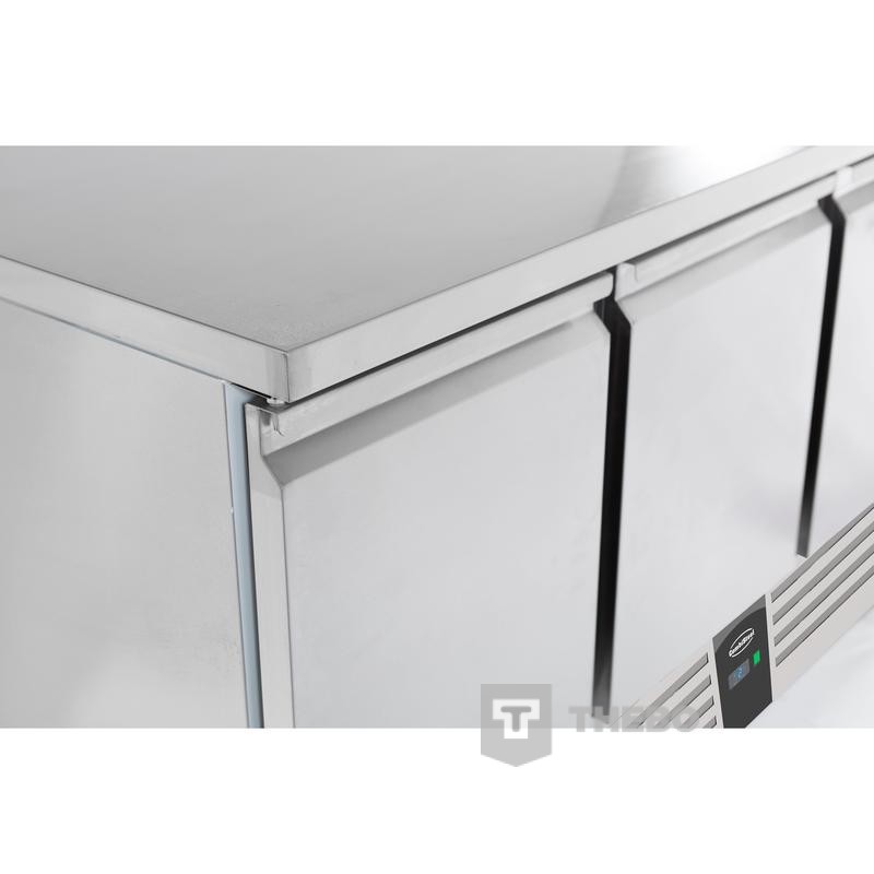 De Combisteel 7950.0112 is een 3-deurs koelwerkbank. De temperatuur is eenvoudig afleesbaar en instelbaar op het digitale scherm. De motor is onder de werkbank geplaatst en heeft een statisch koelsysteem. De Combisteel 7950.0112 is 1/1 Gastronorm. Bijbehorende roosters kunnen als optie mee besteld worden. Het ontdooisysteem heeft een automatische werking, hierdoor bespaar je tijd op onderhoud.