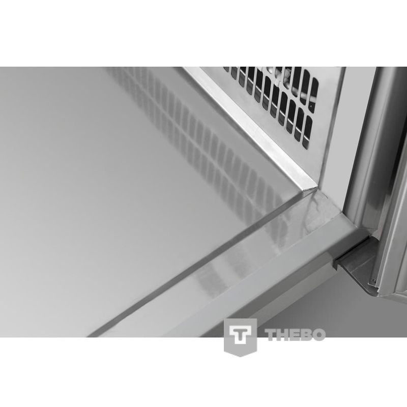 De Gram K 2207 CSG A DL/DL/2D/2D L2 is een gekoelde werkbank met 2 deursecties en 2 ladesecties 2 x 1/2. Het in- en exterieur en de vlak gesloten werkblad zijn uitgevoerd in roestvrij staal. De Gram K 2207 CSG A DL/DL/2D/2D L2 koelt met het milieuvriendelijke koudemiddel R290. Deze koelwerkbank is standaard uitgerust met stelpoten en kan ook met wielen worden uitgerust. De digitale temperatuurregeling bevindt zich aan de rechterzijde van de werkbank en kan tussen +2 en +12 worden ingesteld.