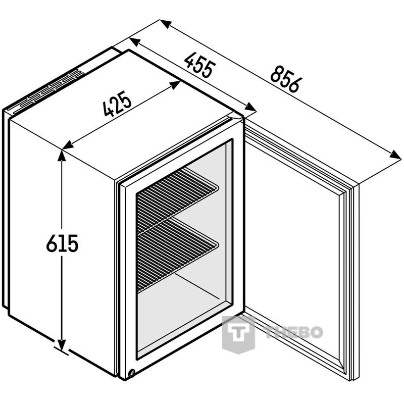 Merk Liebherr Garantie 1 + 4* jaar Energieklasse C Gewicht 35 kg Inhoud 44 L Inhoud netto 42 L Materiaal inwendig ABS Materiaal uitwendig RVS Max. omgevingstemperatuur 35 °C Temperatuur +2/12 °C Temperatuurregeling Analoog Aansluitspanning 230V Aantal deuren 1 Slot Ja Verlichting LED Stelpoten Ja Kleur uitwendig RVS Afmetingen