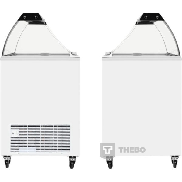 De Schepijsvitrine Tefcold IC501SC+SO is een professionele oplossing voor het presenteren van consumptieijs en ijsblokjes. Met een netto inhoud van 430 liter biedt deze schepijsvitrine voldoende capaciteit voor drukke locaties. Het statische koelsysteem, gebruikmakend van milieuvriendelijk R290 koudemiddel, zorgt voor een efficiënte en constante temperatuur tussen -24°C en -14°C, perfect voor optimale ijskwaliteit. De interieurhoogte van 655 mm en de gecoate plaatstaalomgeving garanderen duurzaamheid en gemakkelijke reiniging. Dankzij de analoog regelbare temperatuur en het slot is de controle simpel en veilig. De IC501SC+SO beschikt over wielen voor eenvoudige verplaatsing en is geschikt voor klimaatklasse 5. Met een energieklasse D en 1 jaar garantie, combineert deze schepijsvitrine functionaliteit met betrouwbaarheid voor professioneel gebruik.