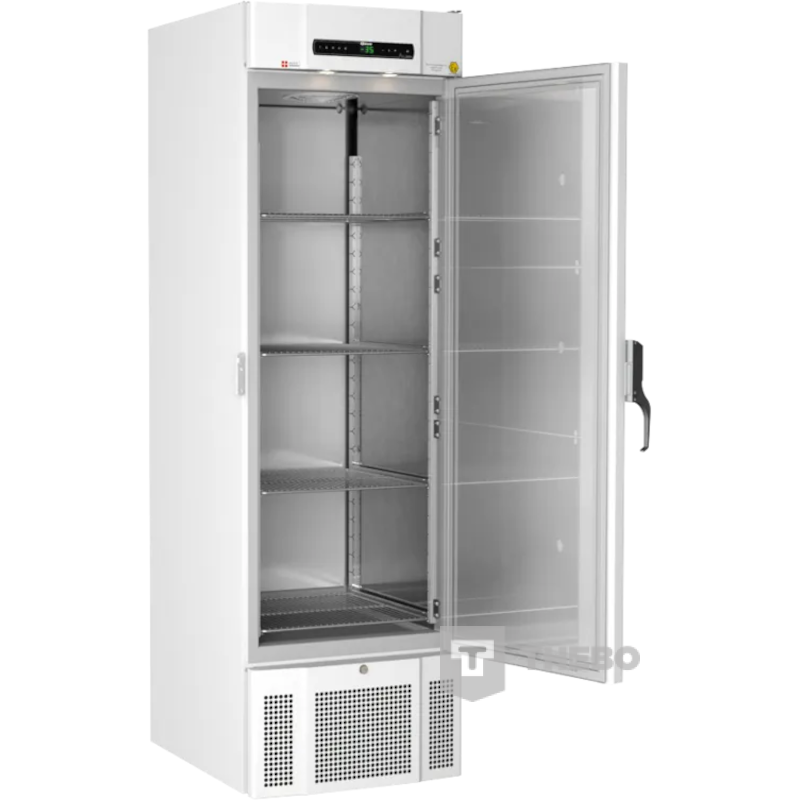 De kast heeft een netto inhoud van 303 liter en is voorzien van een digitale regelaar met ingebouwde alarmhistorie. Temperatuur- en deuropeningsalarmen zijn akoestisch instelbaar voor optimale veiligheid.