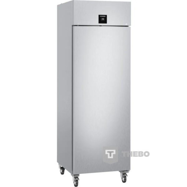 De Liebherr FFPSvh 6501-40 is een vrieskast geschikt voor professioneel gebruik. Het apparaat heeft een statisch geventileerd koelsysteem, waarmee de temperatuur gelijkmatig blijft en digitaal instelbaar is tussen -9°C en -26°C. Het interieur van RVS is voorzien van vier roosters en LED-verlichting voor een duidelijk overzicht van de inhoud. De deuren zijn zelfsluitend en omkeerbaar, en de stelpoten kunnen worden aangepast voor een stabiele plaatsing. Het milieuvriendelijke R290-koudemiddel en energieklasse B dragen bij aan efficiëntie en duurzaamheid. Onderhoud is eenvoudig dankzij de automatische ontdooiing.