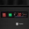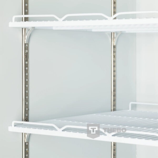 De Tefcold Atom Maxi C3DB is een ruime wandkoeling met een netto inhoud van 1264 liter. De totale inhoud van 1664 liter geeft veel plek voor dranken en voedingsmiddelen. Het geforceerde koelsysteem houdt de temperatuur stabiel tussen +1 en +10°C. De glazen klapdeuren met handgrepen openen soepel en de wielen maken de kast eenvoudig verplaatsbaar. Met de digitale temperatuurregeling stel je de koeling precies af. Het witte interieur (RAL9003) in combinatie met LED-verlichting zorgt voor een heldere en aantrekkelijke presentatie. Dankzij het koudemiddel R290 werkt de Atom Maxi C3DB energiezuinig en milieuvriendelijk. De koeling valt in energieklasse B. Met 15 roosters deel je de binnenruimte flexibel in. De wandkoeling functioneert optimaal in klimaatklasse 3 en bij een maximale omgevingstemperatuur van 25°C.
