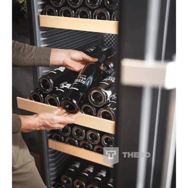 De Liebherr WPbli 5031-20 is een wijnkoelkast met het interieur die gemaakt is van ABS en beschikt over vijf roosters voor overzichtelijke opslag. LED-verlichting biedt helder zicht op de inhoud, terwijl de zwarte behuizing van gecoat plaatstaal zorgt voor een eenvoudige uitstraling. De koelkast heeft één temperatuurzone voor het bewaren van wijn tussen +5°C en +20°C. De deur is omkeerbaar en met de wielen en verstelbare poten kan de koelkast makkelijk worden verplaatst en waterpas gezet. Het apparaat werkt met het milieuvriendelijke koudemiddel R600a en heeft energieklasse F. Voor extra veiligheid is een slot aanwezig.